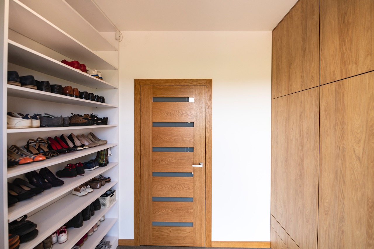 Ten projekt to zabudowa dużej półki na buty i wykonanie szafy na wymiar.