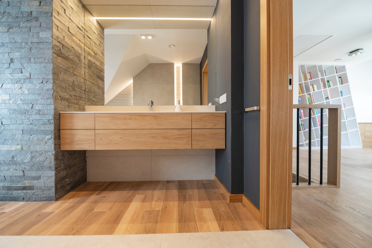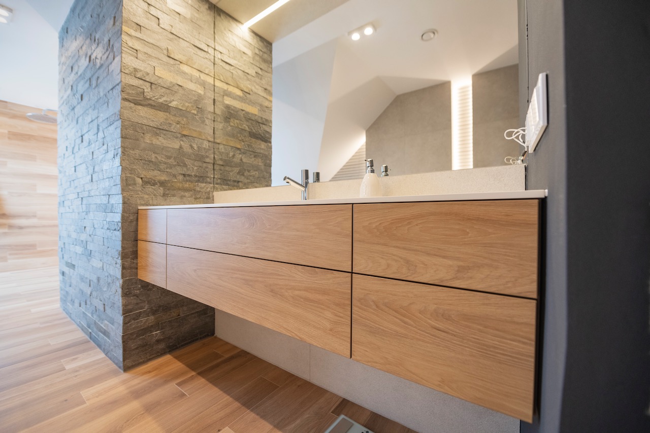 Tym samym, łazienka jak i pozostałe pomieszczenia otrzymały zabudowy wysokiej jakości, łatwe w utrzymaniu w czystości, odporne na warunki ich otoczenia, ale również stanowiące ozdobę.